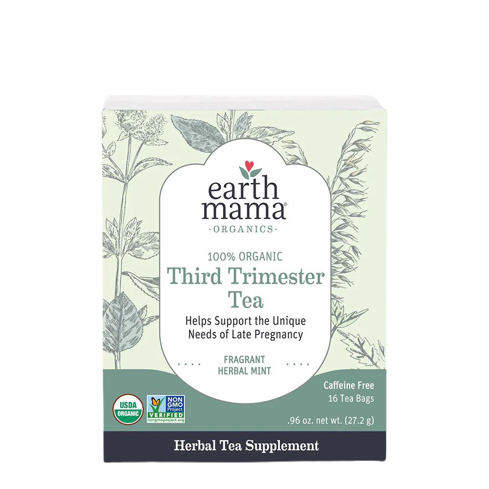Earth Mama Organic Third Trimester Tea is a hearty blend of stinging nettles, chamomile, rosehips, oatstraw, and red raspberry leaf, traditionally used to nurture your third-trimester self and to prepare for labor. It's a time-honored blend for the occasional leg cramp that can cramp a user's style in the third trimester.